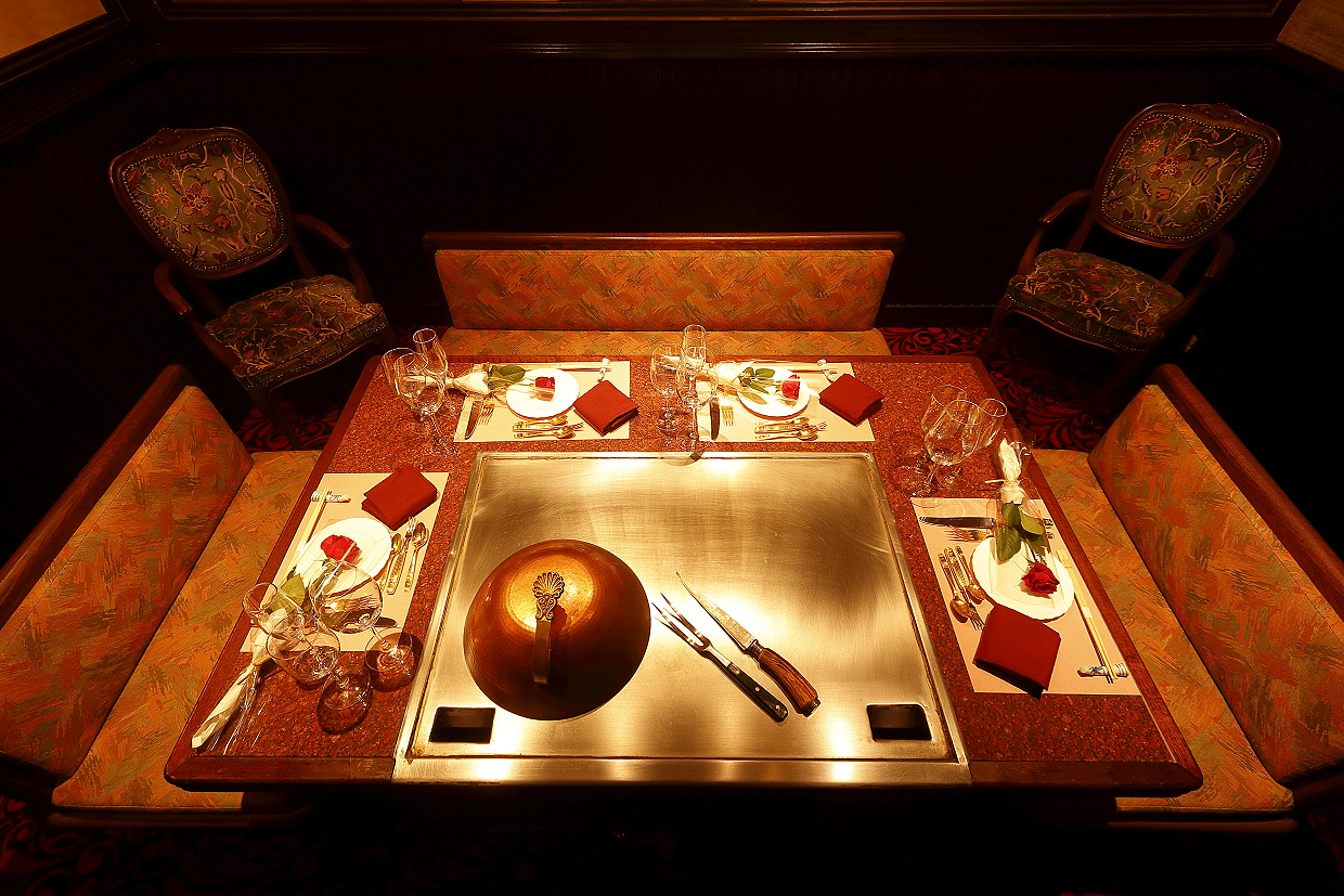 「山海亭」は、和牛やな海鮮の鉄板焼の料理が楽しめるお店です。上質な食材を、シェフが目の前で焼き上げます。お好みの焼き加減でどうぞ