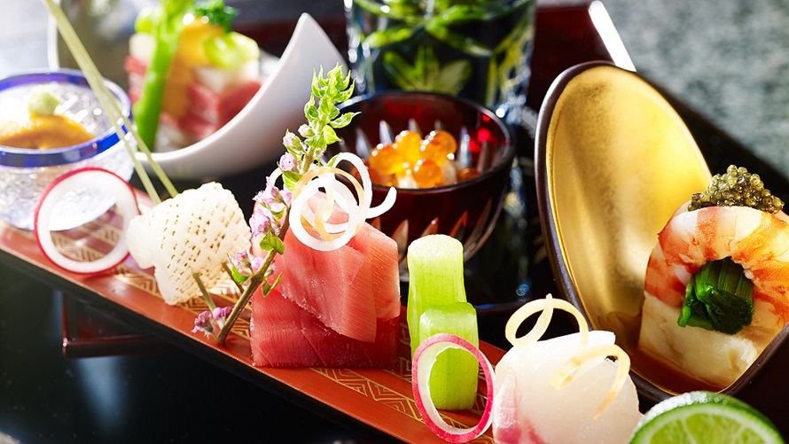 大きな窓のある店内からは、庭の木々が見渡せる開放的で和風の空間が広がります。カウンター席やブース席、ゆったりと座れるテーブル席をご用意。利用シーンに合わせたお席をお選びいただけます。四季の素材を活かした和食のほか、江戸前寿司、天ぷら、焼き鳥など豊富なメニューが人気です。伝統的な日本料理を、職人の技で舌と目で楽しめる新しい懐石料理として提供しています。日本酒やソムリエが選んだワインとともにお楽しみください。