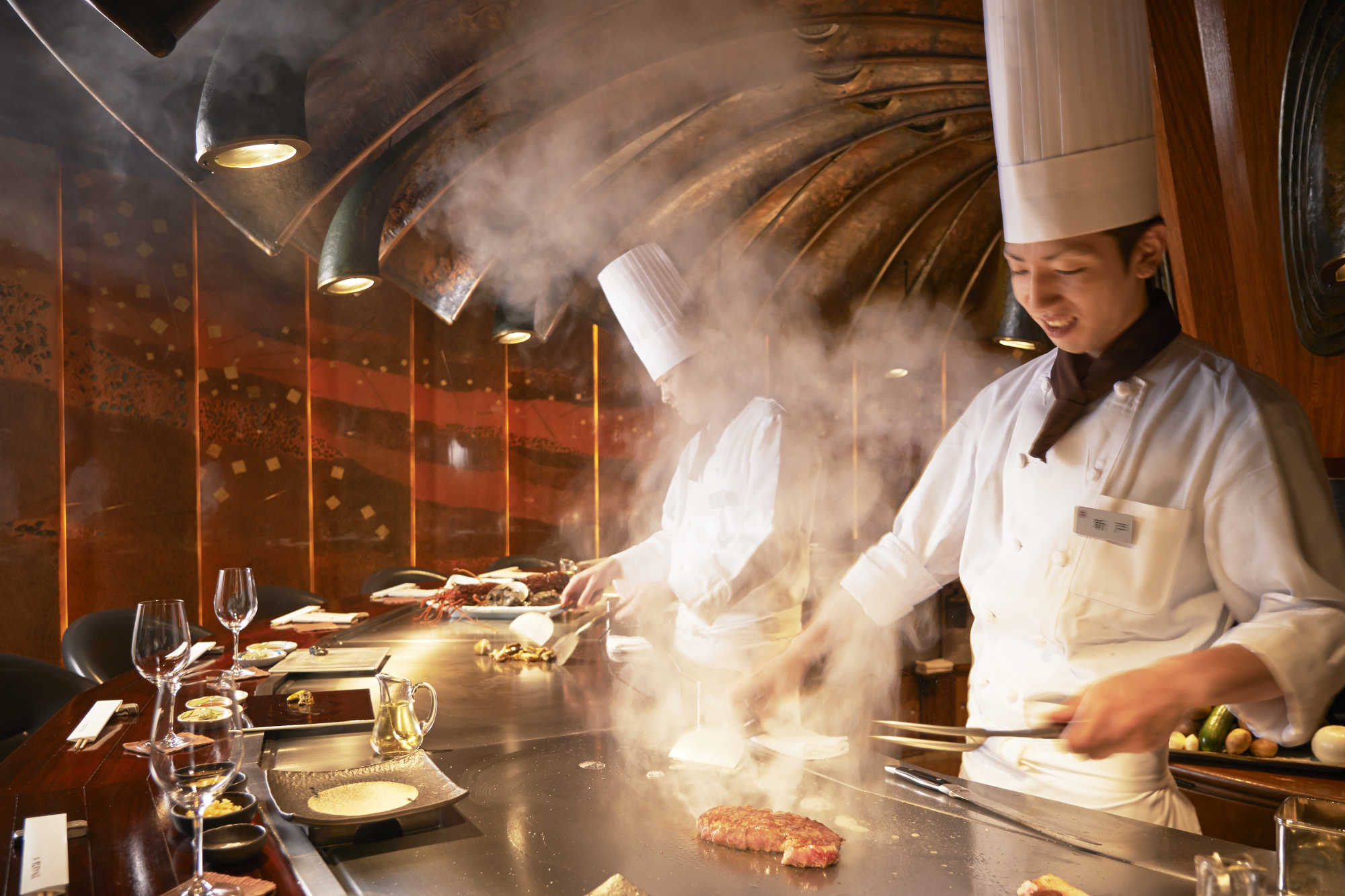 ドラマティックな空間で楽しむ神戸牛とシーフードの鉄板焼