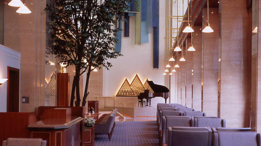 高さ22mの吹き抜けでゆったりとくつろげる空間のロビーラウンジ