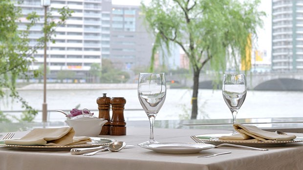 地場の食材を使った本格フレンチを、信濃川の美しい景色とともに味わう