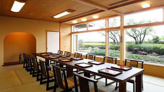 テーブル席とお座敷、お寿司カウンターもあり、情緒あふれる日本庭園を眺めながら、本格的な京料理をたっぷりご堪能いただけます。