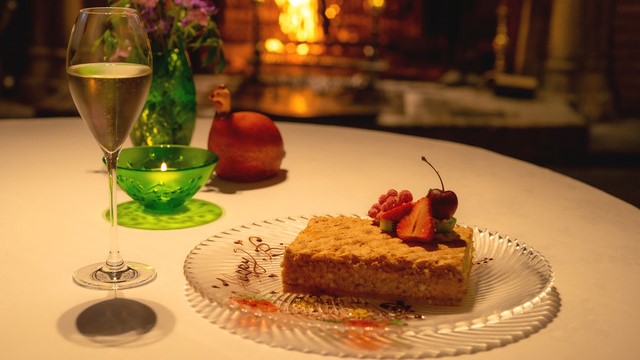 重厚感のある内装と美しい暖炉がある空間で味わう本格フランス料理
