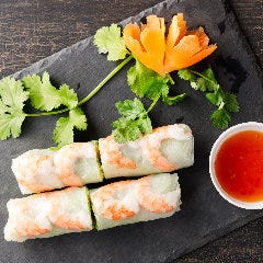 お勧めメニュー! ベトナム発祥の生春巻き! 手作り焼き春巻き! カエルのから揚げ 出汁の効いたフォー各種 バインミー ビール、カクテル、そして甘いシェイクもございます。 海に面した場所が多いベトナムは海鮮料理はもちろん、野菜やハーブ類も多くあり甘味、酸味、辛味、塩味のバランスがよく他ののエスニック料理ほど辛くなく、お肉もヘルシーな鶏肉や砂肝などがあり全体的に脂が少ないのも特徴です。なので女性はもちろん男性からも人気の料理です。 ご宴会はもちろん、グループでベトナム旅行気分でお食事や飲み会も楽しめます!