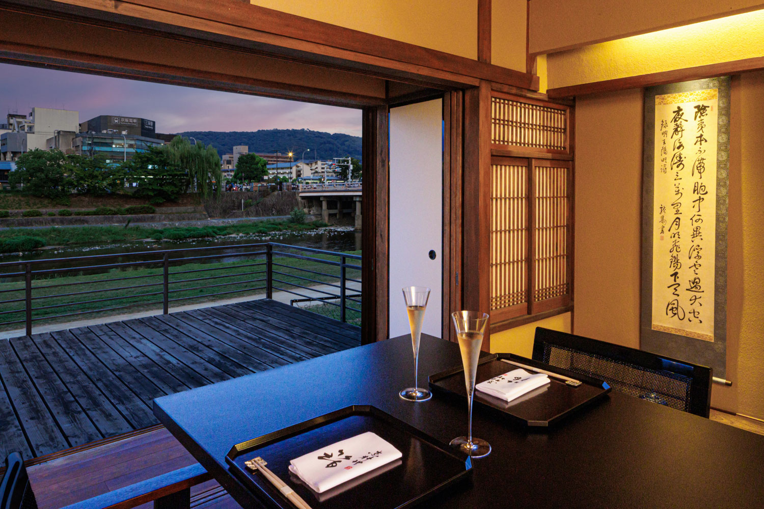 幕末の面影を残すたたずまいの中で、鴨川の川風に吹かれながら贅沢なひと時を