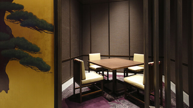 日本料理 Azekuraは、数多くの世界遺産が残存している奈良の地域特性に合わせて、内観を工夫しました。日本で古くから伝わる建築様式を模し、店内に装飾を施しております。松が描かれた襖絵、木目調のインテリアから悠久の歴史を感じ取っていただけるでしょう。ディナータイムには、ハンドメイドのペンダントライトなど、美しい間接照明が灯り、様相が一変します。ロマンチックな雰囲気の中、本格派の日本料理をご堪能ください。