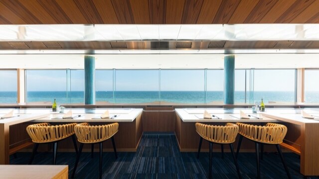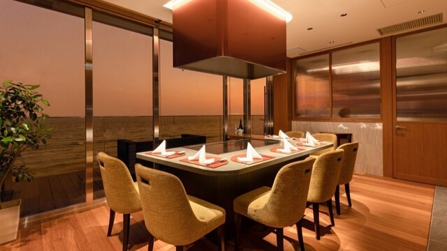 落ち着いた空間で湘南の海を眺めながら、最高級の和牛を楽しめる鉄板焼き