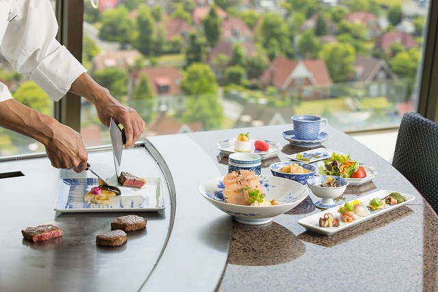 高級ホテルの最上階で、シェフの腕前が光る絶品の鉄板焼きを味わう