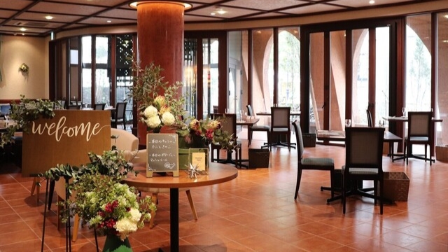 開放感のある店内からは、季節の花や教会のステンドグラスが見える庭園を眺められます。地元の食材をふんだんに使ったメニューをご用意。ワンプレートランチやパスタ、キッシュといったフレンチをご堪能いただけます。キッシュのテイクアウトも準備しておりますので、ご家庭でもお店の味をお楽しみください。料理と一緒に楽しめるビールやワイン、ノンアルコールドリンクなどを豊富にご用意しています。