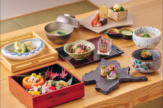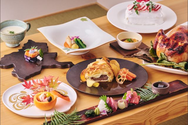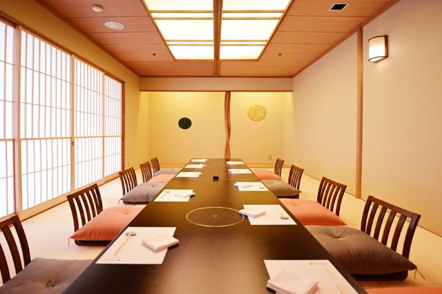 木の温もりが感じられる店内は、しっとりと落ち着いた和の空間です。群馬の旬の食材を厳選して、匠が丹精込めてつくりあげる日本料理の数々は、味はもちろんのこと、目でもお楽しみいただけます。上質なお肉の旨みを味わえる鉄板ステーキは、シェフが絶妙なタイミングで焼き上げて、熱々の状態でお届けいたします。贅を尽くした創作料理の数々を、最上級のおもてなしとともにご堪能ください。