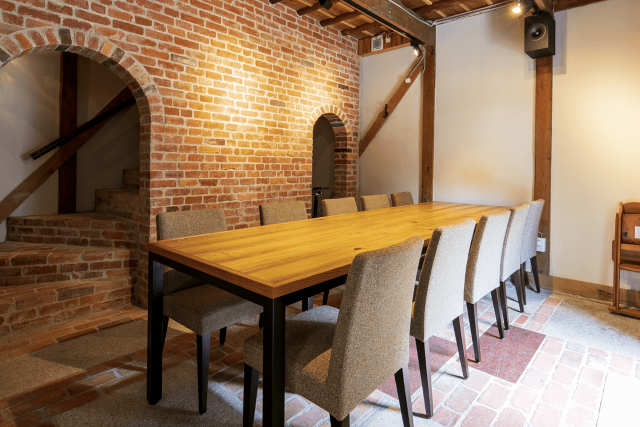 大野町ダイニング kuramaは、明治時代の町家をリノベーションしたノスタルジックな空間で、魅力的な食体験を提供するダイニングです。旧井上歯科医院を再利用した店内にはテーブル席やカウンター席があり、坪庭を挟んで佇む築100年の蔵は個室になっています。ご友人との会食の他にも、ご家族の集まりや職場の懇親会など、さまざまなシーンで利用可能。季節の食材を使った料理と豊富なドリンクメニューを愉しみながら、ゆったりとした時間を過ごすことができます。