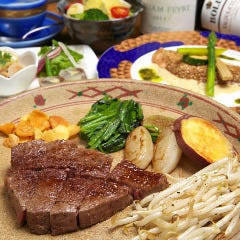 厳選された食材を調理する姿を見ながら、出来上がった絶品料理を いただける至福のひと時をお過ごしください。 ◆至極の味わい◆ ・特選和牛(ヒレ または サーロイン) <100g>2,700円(税抜)<150g>3,700円(税抜)<200g>4,800円(税抜) ・極上和牛(ヒレ または サーロイン) <100g>4,000円(税抜)<150g>6,000円(税抜)<200g>8,000円(税抜) 全てにサラダ、焼野菜、シャーベットが付きます。 ◆毎日変わるコース◆ ・おまかせコース[全7品] 6,000円(税抜) ・飲み放題 +2,000円(税抜) 日本酒、ワイン、焼酎、生ビール、ウイスキー、ハイボールなど。 ◆ステーキと一緒に◆ ドリンクは赤ワイン、白ワインをご用意しております。 ステーキに舌鼓を打ちながら、片手にワインをお楽しみください。