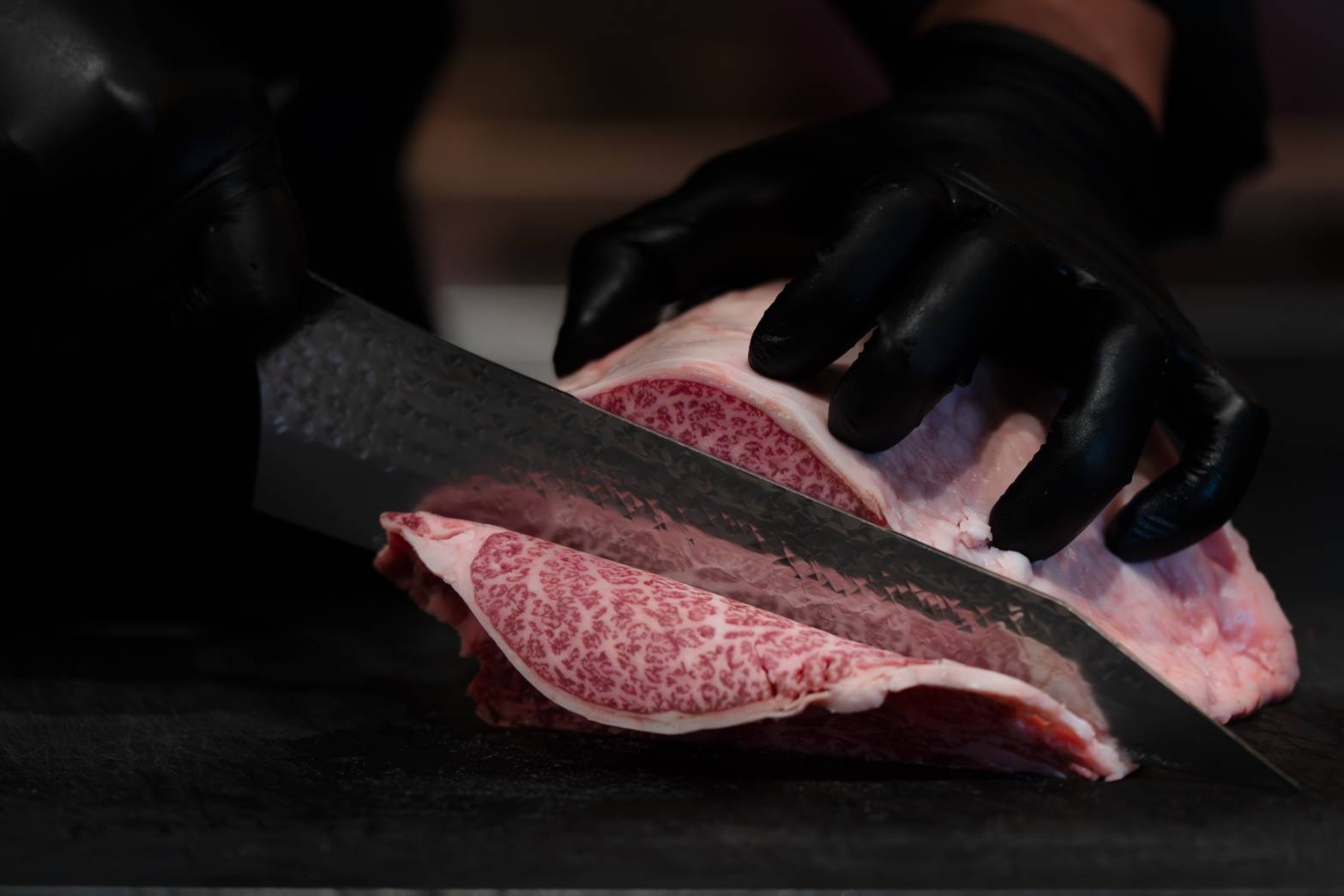 落ち着いた和テイストの入口から店内に入ると、温かみのあるウッドテイストのカウンター席が現れます。目の前でシェフの調理工程を見ることが出来るため、味わうだけではなく目でも楽しんでいただける空間です。コース料理のみとなっていますが、どのコースも前菜から和洋中様々な技法を用いた肉料理を提供しております。旬の食材と上質な牛肉を五感と心でお楽しみいただける、格別な時間をお過ごしください。