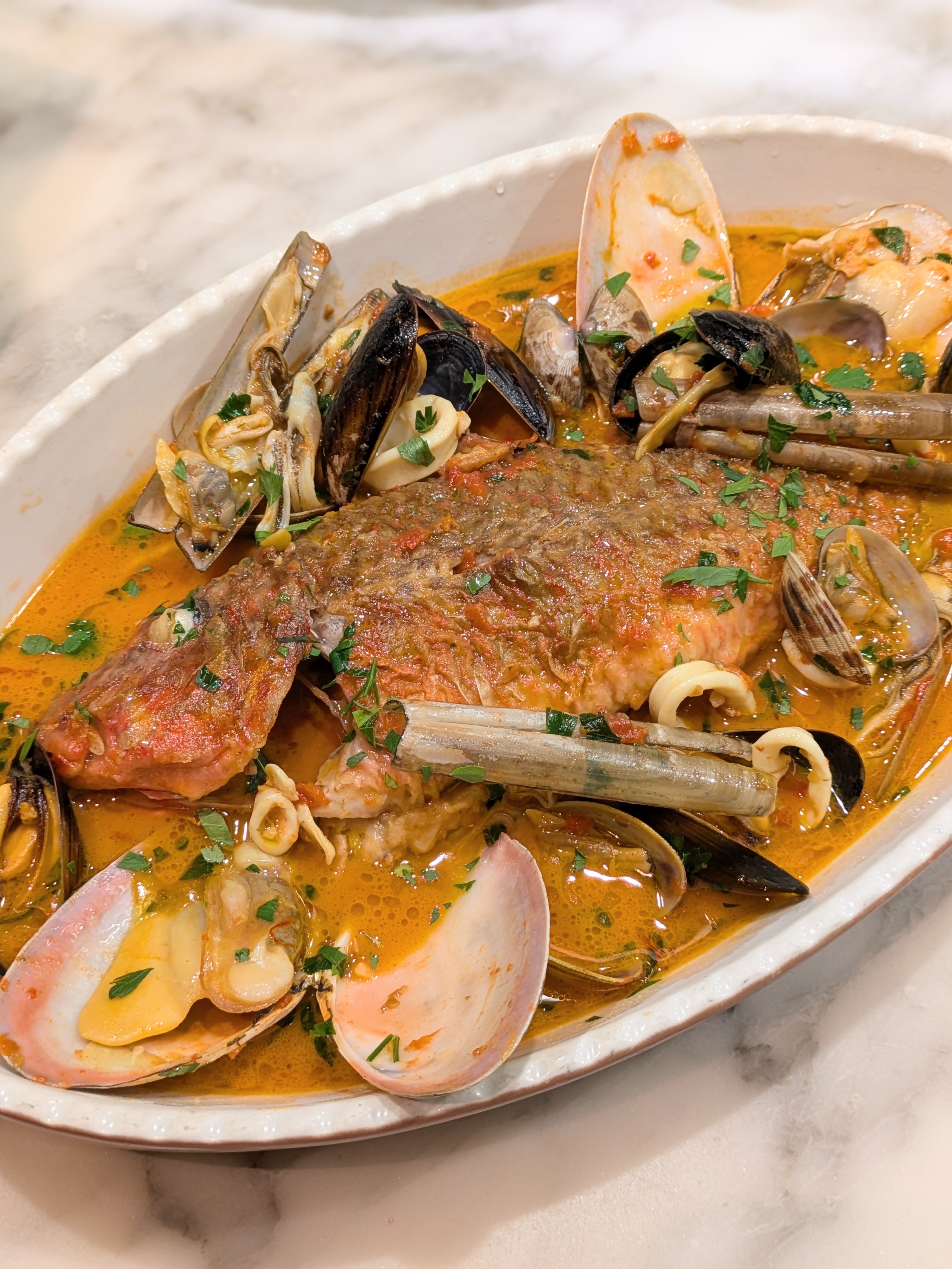 麻布台に店を構える「ボガマリ・クチーナ・メディテラーネア」は、新鮮な魚介を目の前で選び、好みの調理法で仕上げてもらえるスタイルが魅力の地中海イタリアン。素材を活かしてシンプルにレモンを絞ってフレッシュのままでもグリルに蒸し焼き、定番フリットやアクアパッツァなどイタリア料理の調理法で海の恵みを存分に楽しめます。ランチタイムには、彩り豊かな贅沢な前菜を豊富に楽しめるブッフェスタイルを採用。カジュアルにも特別な日にもふさわしい一皿が待っています。
