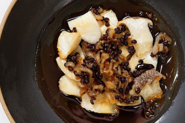 当店では、イタリアンシェフによる新しい日本料理をアラカルトでご提供いたします。京野菜や和牛を使用したフュージョン料理と、全国各地から厳選された120種類の日本ワインをお楽しみいただけます。フリーテイスティングを通じて、お好みのワインを見つけることが可能です。特別なひとときを、洗練された異空間でお過ごしください。