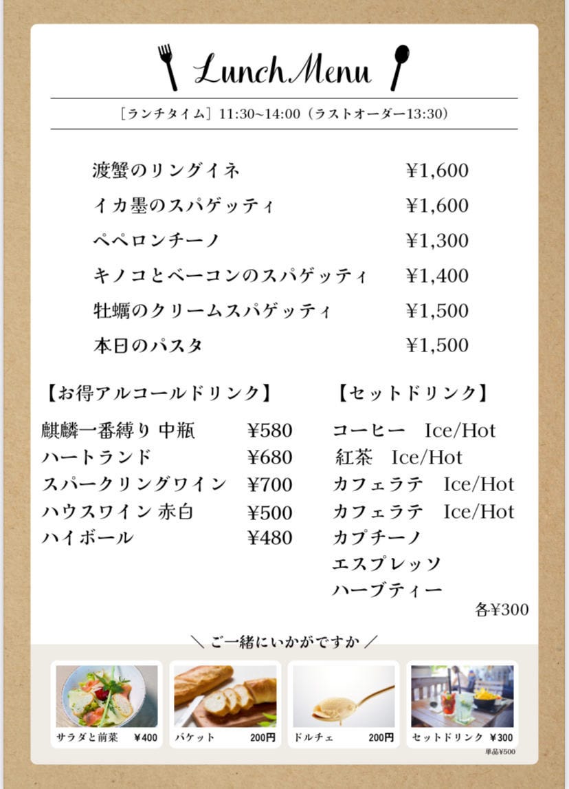 11:30 - 14:00(L.O. 料理13:30 ドリンク13:45)