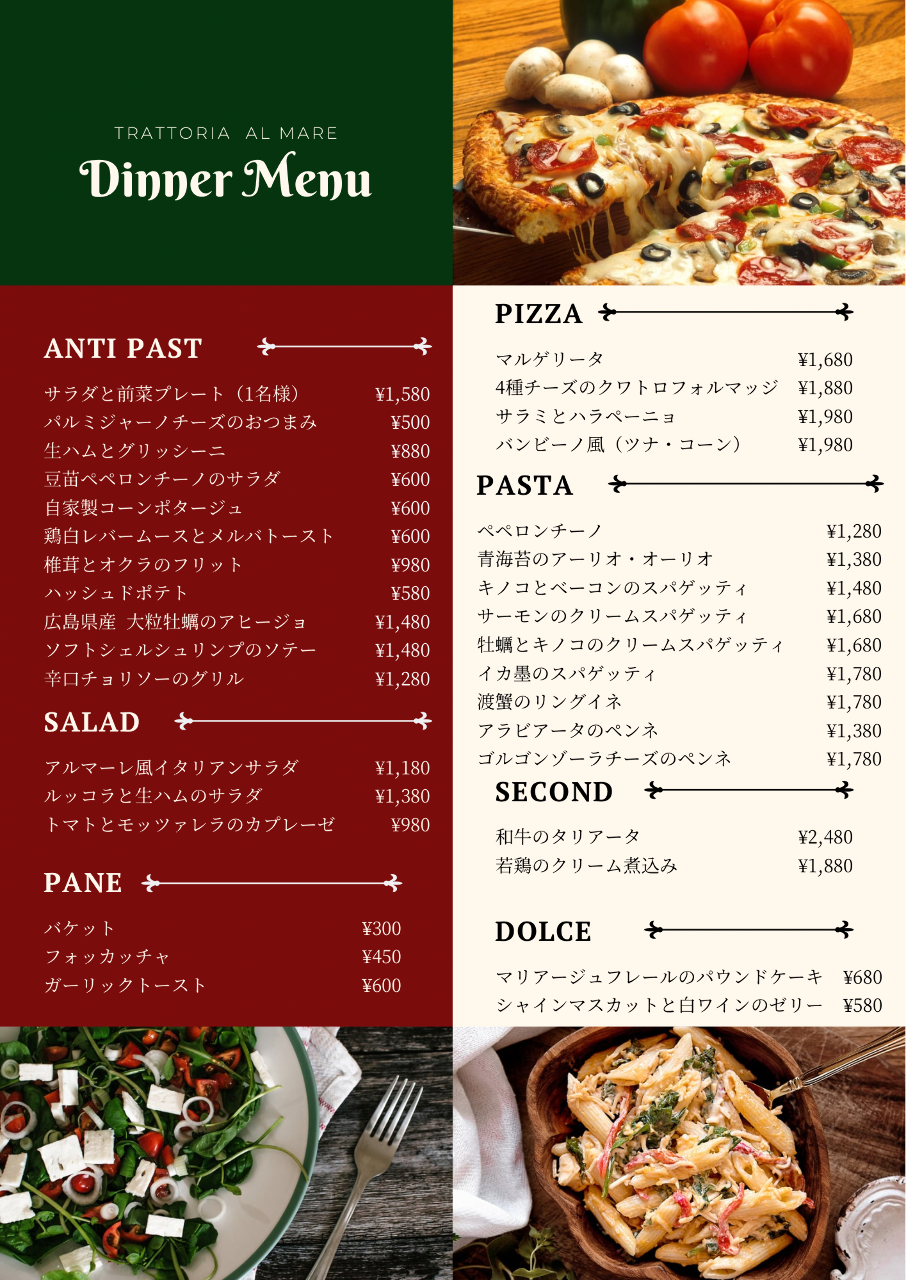 18:00 - 22:00(L.O. 料理21:30 ドリンク21:45)