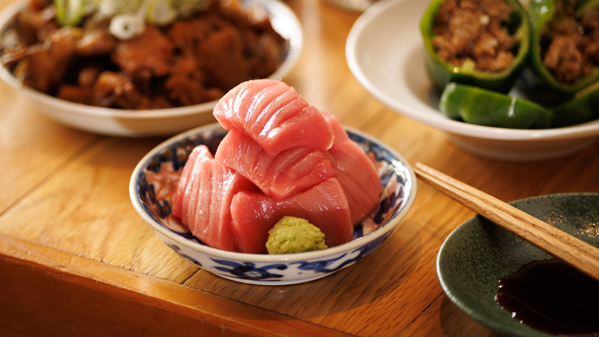新宿御苑前駅から徒歩すぐ、木の温もりあふれる店内で“ちゃんと美味しい”大衆料理が楽しめる【新宿一丁目たぬき】。名物の牛もつ煮込みは和牛の旨味と秘伝味噌が織りなす名物の一杯。〆には自家製麺をぜひ。気軽な一人飲みから仲間との宴会まで、ネオンが灯る温かな空間で、毎日でも通いたくなる心地よさをご提供します。