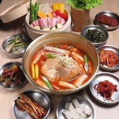 トッポギや野菜などの具材、〆のカルグクス・雑炊、小鉢まで“すべておかわり自由”の圧倒的満足感。ボリューム・味・コスパすべてにこだわった4500円セットはリピーター続出中!