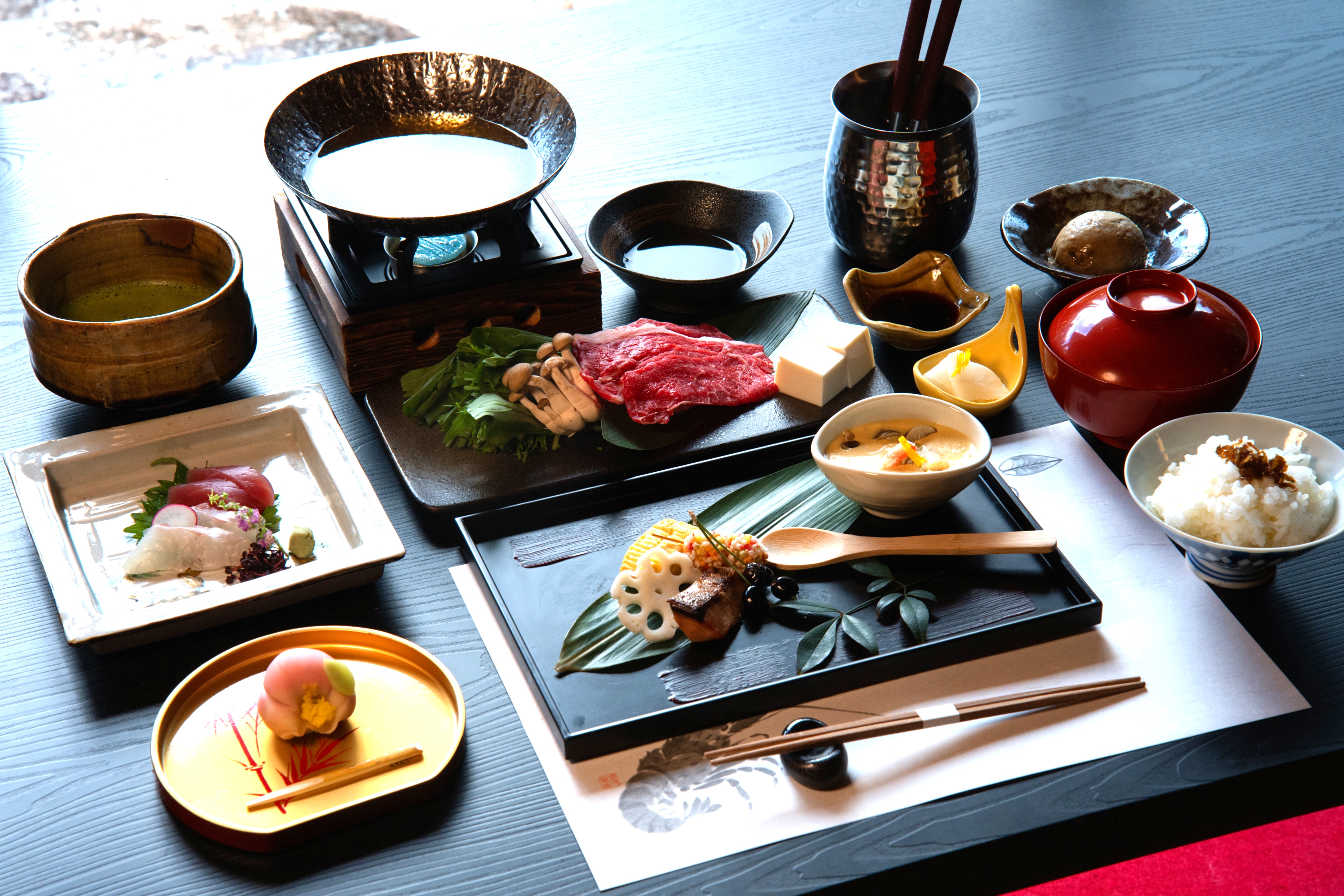 茶寮桐山は京の懐石とおばんざいの美を丁寧に紡ぎます。旬の素材をたっぷりと使い、彩り豊かな京の味を上品にお届けします。また、旅の合間のひとときに安らぎを添える抹茶と和菓子のセットも提供。和室の静かな空間からは庭園を望み、季節の流れを感じるひとときです。個室も完備しており、大切な人とのお食事や記念日にもご利用いただけます。