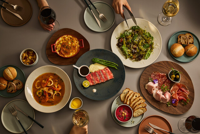 ヨーロッパの街角に迷い込んだかのような外観の建物の扉をくぐれば、解放感あふれるセンス抜群のモダンな客席が目に飛び込んできます。非日常の時間を満喫できるゴージャスな空間をご堪能ください。美容や健康にも良い食材をふんだんに取り入れたお料理やまるで宝石のような煌びやかさが感じられるおしゃれなスイーツをご用意しております。香り豊かでおしゃれなドリンク類とのマリアージュもお楽しみいただけます。