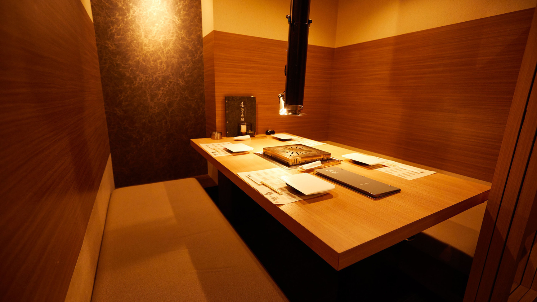 畜産大国 鹿児島県の中でも指折りの牛飼い名人がつくる、自慢の『薩摩牛 4%の奇跡』はしっかりとサシが入ったお肉ですが脂がさっぱりとしていて食べやすいのが特徴です。うす切りカットの焼きしゃぶや、厚切りのステーキカットまでお召し上がり方も色々。色々な部位を少しずつ楽しめる盛り合わせや焼肉コースもおススメです。お席は全席個室で、少人数のお食事会から最大で26名までのご宴会まで対応できます。接待や会食、ご家族でのお食事まで様々なご用途でご利用下さいませ。