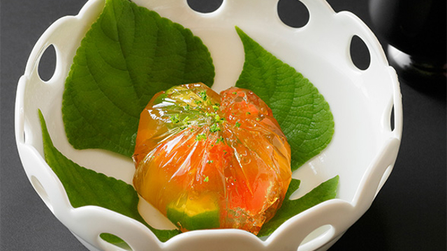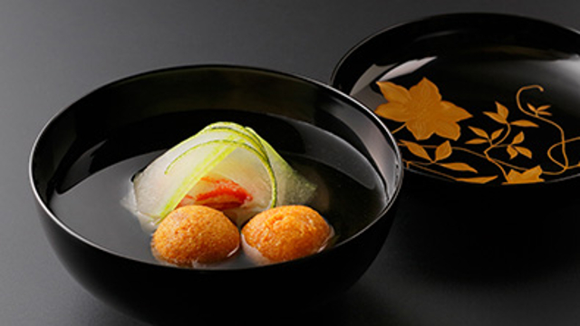 木のぬくもりを感じる落ち着いた雰囲気の店内で、ゆっくりと食事の時間をお楽しみいただけます。伝統の技巧と現代的な感性を組み合わせた、洗練された料理を提供。五感を楽しませる厳選した食材と素材が持つ旨みを引き立てる出汁のバランスを考えた一皿をご賞味ください。四季折々の食材を盛り込んだ懐石料理やお点心に加え、鱧鍋や真鴨鍋といった季節に沿った鍋料理をご用意。料理と一緒に、季節のお酒や岐阜県の銘酒など様々な日本酒をご堪能ください。