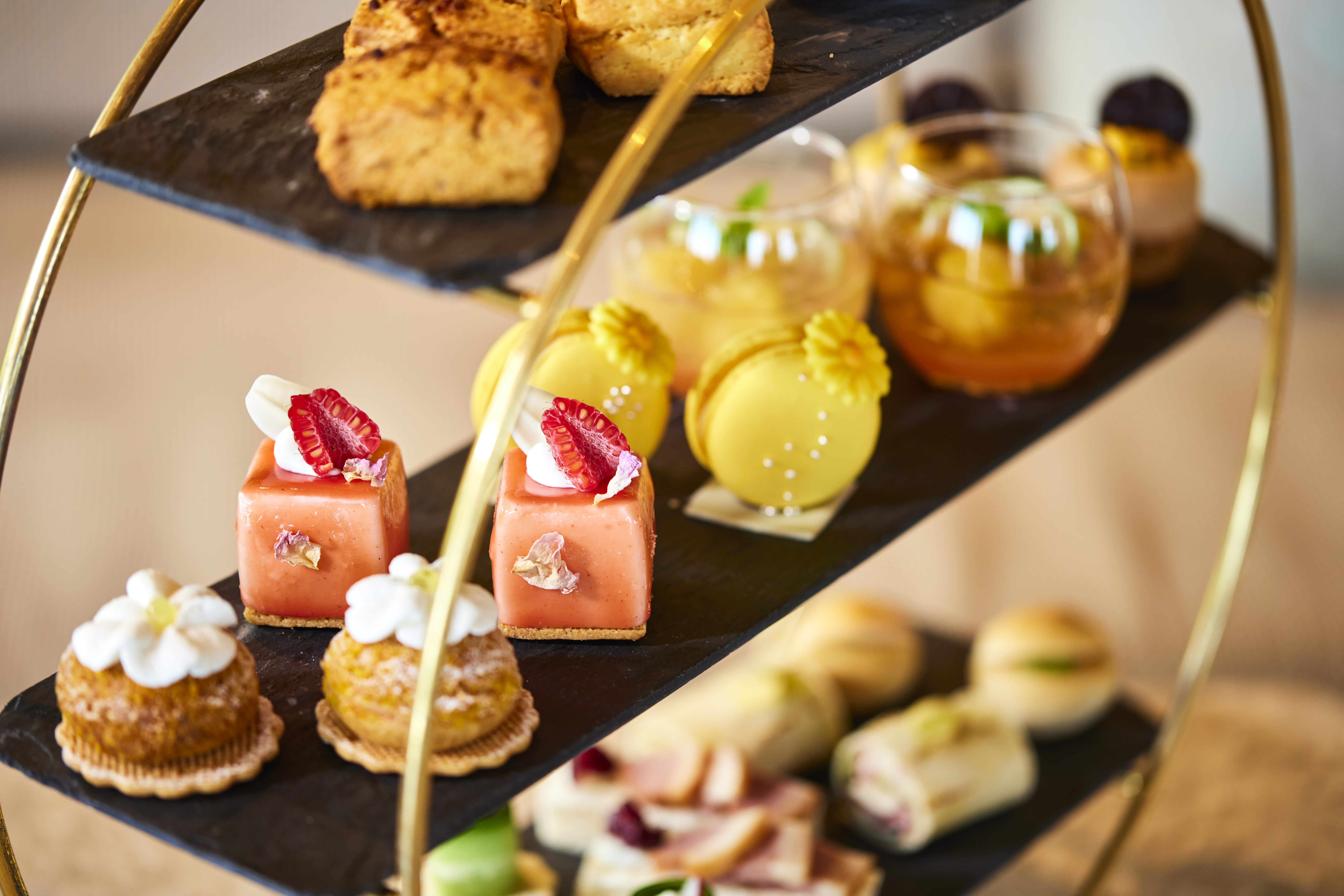 遮るもののない絶景を眺めながら、世界中から茶葉を 厳選した当店では、英国風の本格的なティータイムを お楽しみいただけます。紅茶の楽しみは、まず茶葉を 選ぶところから。香りをかぎ分けたり、料理やスイーツに 合わせて紅茶を選んだり。お湯が注がれたポットの香りを 楽しんだら、蒸らした後にカップに注いでまた楽しんで。 数分単位で変化するめくるめく紅茶の世界をご堪能 ください。