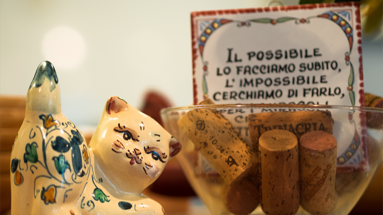 シチリアでの料理修行中に出会った、シチリアの郷土料理と、風景や人々。そんな素晴らしい魅力を少しでも感じていただくため、穏やかな海を思わせる青い壁と温かみ溢れる木のテーブルでお迎えします。野暮ったくも滋味深い、イタリア料理とはまた少し違ったシチリアの家庭料理をコースにてご用意しております。こだわりのシチリア産ワインや食後酒も取り揃えておりますので、ぜひご一緒にお楽しみください。