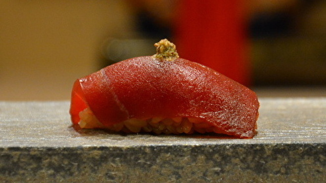 オリジナルブレンドの赤酢シャリをはじめ大将が細部までこだわりぬいた鮨屋
