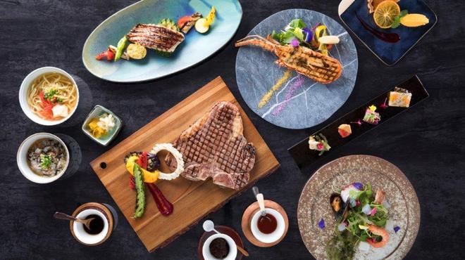 あたたかな陽光が差し込む、明るく開放的な雰囲気の店内。目の前には沖縄の広大なビーチが広がり、屋外座席ではそれを一望しながらお食事ができます。客席の間近にあるオープンキッチンは、まるで華麗なショーの舞台です。シェフたちが魅せるプロの技をすぐ目の前でお楽しみいただけます。最高級の和牛と地元沖縄産の野菜や魚介類を、素材本来の味を思う存分味わえるグリルでご賞味ください。