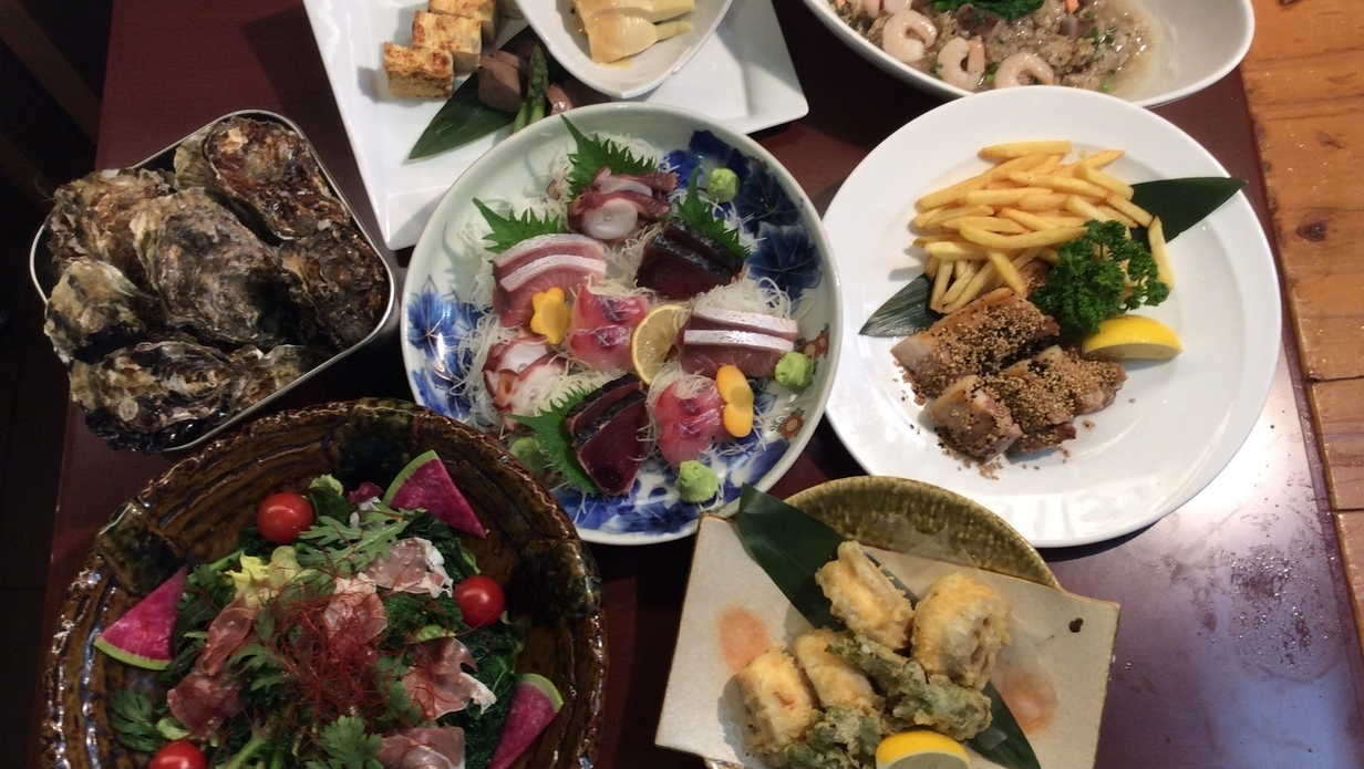 武蔵溝ノ口駅から徒歩4分にあるスポーツクラブNAS溝の口のビル1Fに位置する当店では、溝の口でも大勢の地元の方に愛されるお店になるため、新鮮な野菜、魚介、食材にこだわり、お刺身、サラダ、揚げ物、串焼き、おつまみなど種類豊富な料理をご用意しています。キッチンでの調理の様子が見渡せるカウンター席とテーブル席、8名が座れる大きな木のテーブル席、半個室席など、様々なお席をご用意しています。お一人でもご家族、友人やカップル、団体様、どのような用途でも気取らず安心してご利用いただけます。