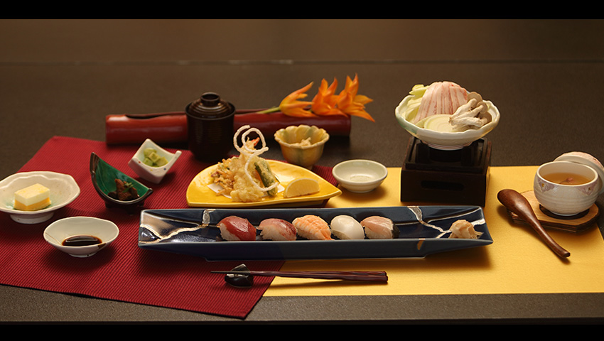 日向雫はANAホリデイ・イン リゾート宮崎館内の懐石料理をメインとした和食レストランです。広大な日向灘を望む店内には個室やテーブル席の他、掘りごたつの落ち着きあるお席をご用意しています。日向灘近海で捕れた新鮮な海の幸や旬の山の幸をふんだんに使用した、四季折々の懐石料理が自慢です。地元宮崎のブランド牛や本格焼酎なども取り揃えています。お土産には素材からこだわり抜いた宮崎の郷土料理「冷や汁」をご用意しておりますので、ご自宅でも日向雫の味をお楽しみ頂けます。