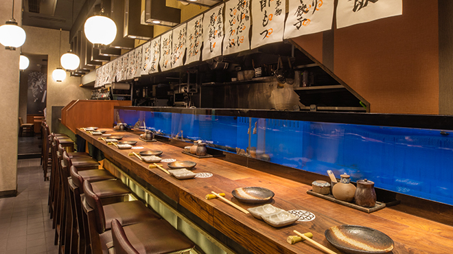 薩摩の酒蔵をイメージした、和の趣あふれる空間で九州食酒巡り。 全席個室の“大人の隠れ家”のような空間で味わえるのは、九州の海と大地に育まれた、 厳選食材を活かした料理の数々。ファームから直送される馬刺し、羽付鉄板餃子、博多名物辛子明太子の炙りや 自家製タルタルのチキン南蛮など、人気メニューが揃う。また生け簀には旬の魚を準備しており、御造りや天ぷらなど 旬を味わう楽しみも。選りすぐりの蔵元の、80種類ほどの地酒や焼酎など豊富なドリンク類を合わせていただき、九州の“すごかもん”に酔いしれて。