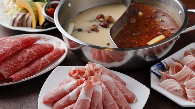 沖縄のリゾート地にたたずむアジアン風な外見のお店。一歩店内へ足を踏み入れれば、そこはまるで中国にいるかのようです。全てのコースで、高級ラム肉や沖縄ならではのお肉などを味わえます。火鍋に使われる白湯スープと麻辣スープには、身体に嬉しい効果のある様々な薬膳が入っており、健康志向の方にもお楽しみいただけます。中国の本格的な薬膳火鍋をご堪能ください。