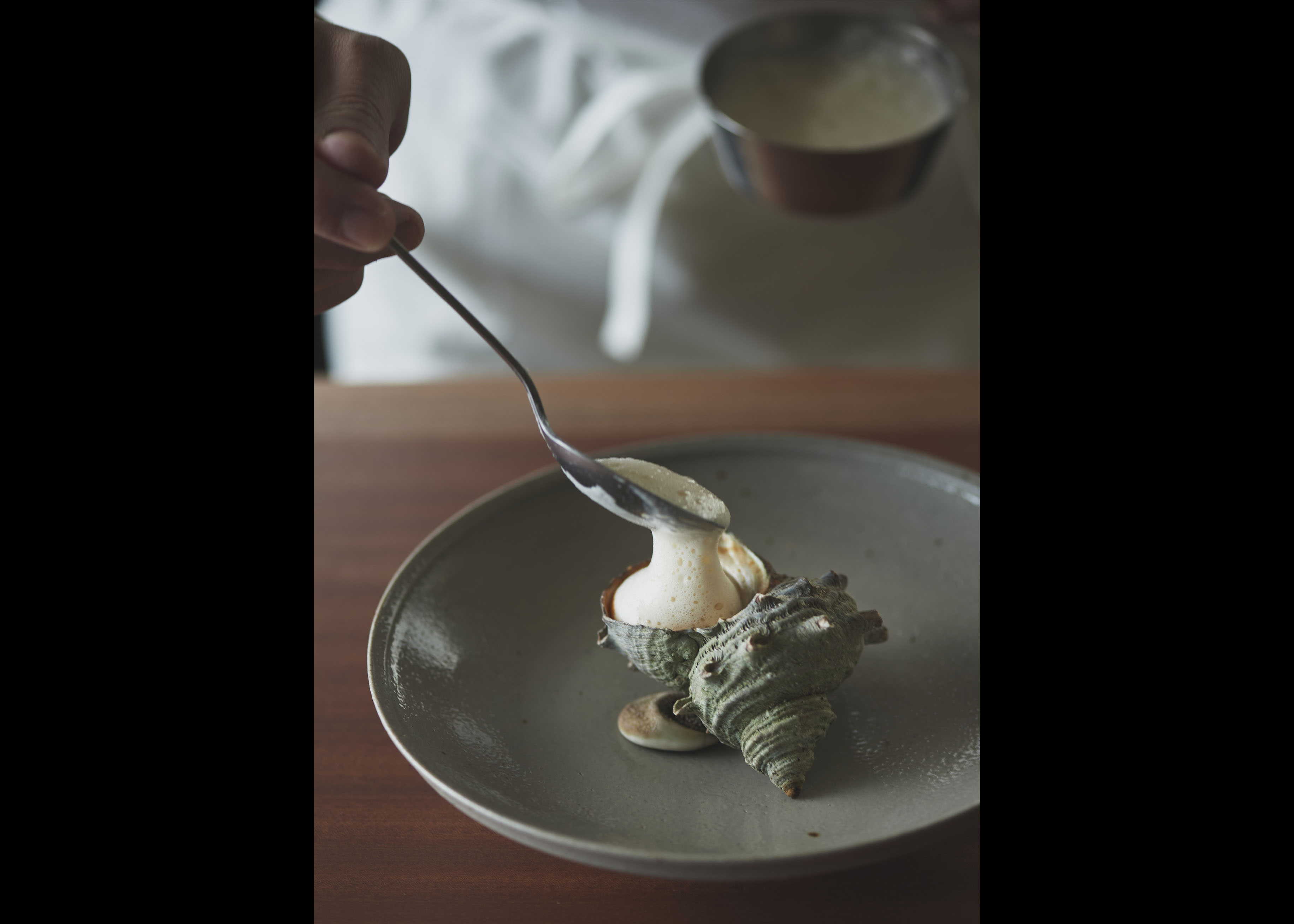 福岡から1時間、壱岐島のフレンチレストランです。どこよりも濃厚なウニ、肉厚な天然アワビなど季節ごとに獲れる新鮮な魚介類、幻の銘牛とも呼ばれる壱岐牛と、この小さな島では一年を通してお米や様々な野菜も育ちます。わずか半径10kmの範囲で得られる多様な食材を、培ってきたフレンチの技術で最大限引き出し、美しい海の風景と共に提供します。