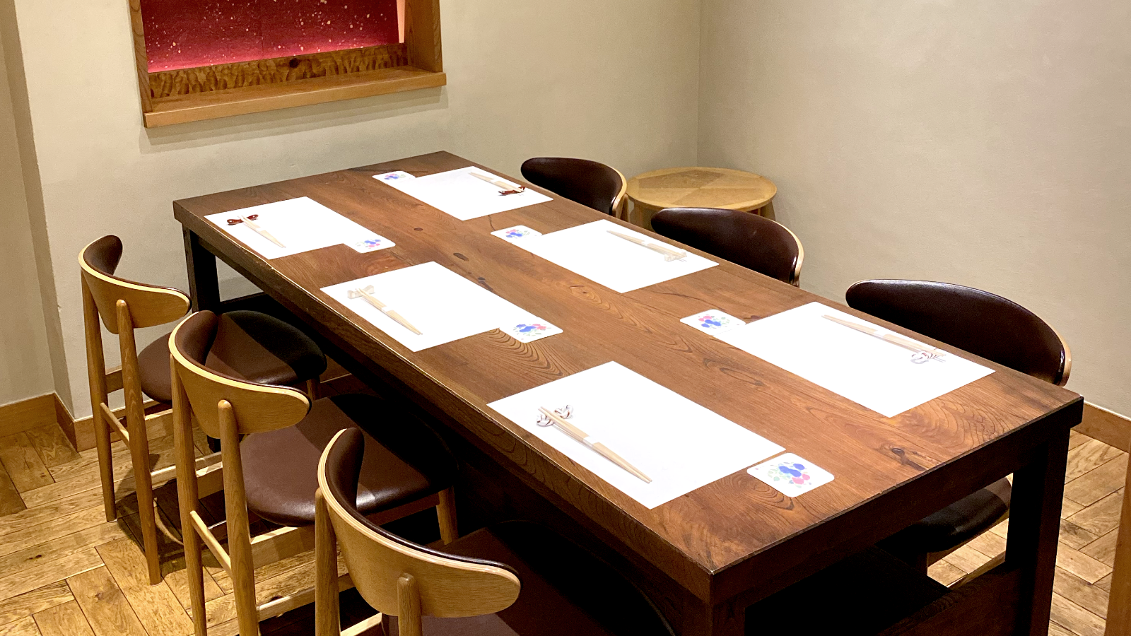 階段を上がると、大きなオープンキッチンと8席のみの白木カウンターが広がります。職人の所作を間近に感じながら、旬の魚を丁寧に仕込んだ江戸前鮨をゆっくりとお楽しみいただけます。落ち着いた空間の中で、鮨と会話を心ゆくまでご堪能ください。