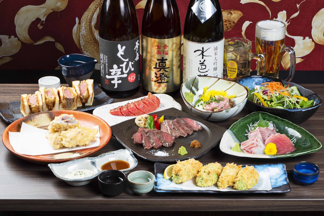 落ち着いた雰囲気の中で魚介を主とした和風が楽しめる【酒場えびす堂高崎店】。『海鮮うまいもん全部盛り合わせ』や『上州牛の炙りユッケ』など、素材の持ち味を生かした料理が自慢です。日本酒と焼酎は合わせて10種類以上、基本的なドリンクも豊富で、飲み放題付きコースも親しまれています。2階にはカウンターがあり、一人での食事にも使いやすく、テーブル席や6~10名の半個室も完備。3階は用途に合わせて選べる完全個室が充実し、2名から最大30名まで幅広く利用できます。仕事帰りの一人飲みから少人数の食事、カップルシートを利用したデート、団体での宴会まで幅広い方々にオススメ。それぞれのシーンに合わせて席を選べる居酒屋です。