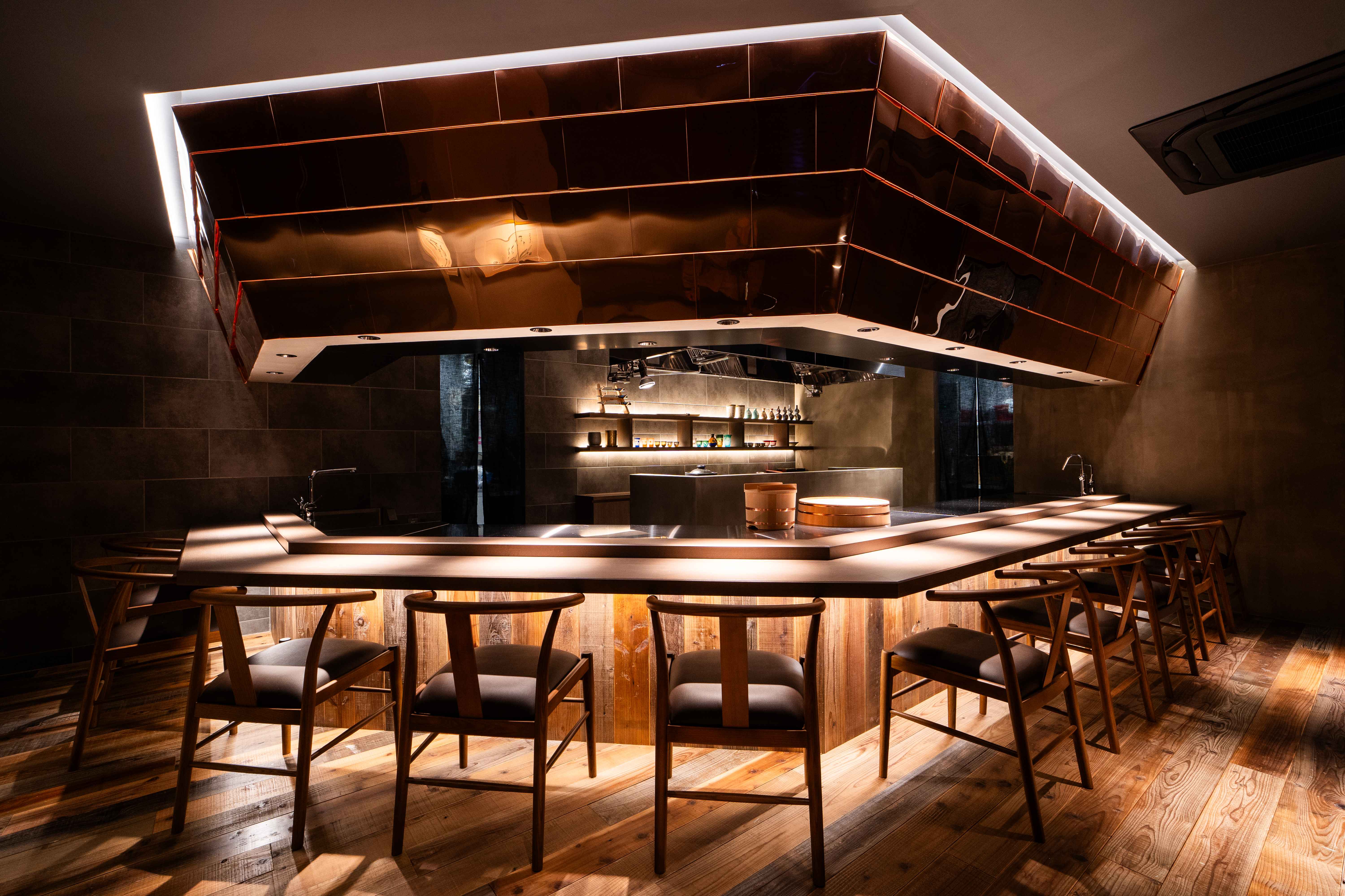 広島県産を中心とした選りすぐりの旬の食材で描く、臨場感たっぷりの逸品。カウンターを主体に洗練された空間で、鉄板料理を楽しめるお店です。メインとなる『ステーキ』には、地元ブランド食材であるA5等級「広島牛」など、厳選和牛をセレクト。店内の水槽から活きた状態のまま水揚げし調理される『活オマール海老焼き』『穴子の刺身』など、ダイナミックな生け簀料理も見ごたえ抜群。熟成魚・熟成まぐろ・黒毛和牛で握る、『寿司』『肉寿司』も堪能できます。記念日・接待などの大切な日には、お店の名物メニュー満載のコース料理もオススメ。八丁堀駅から徒歩5分。日常に贅沢を与えてくれる一軒です。