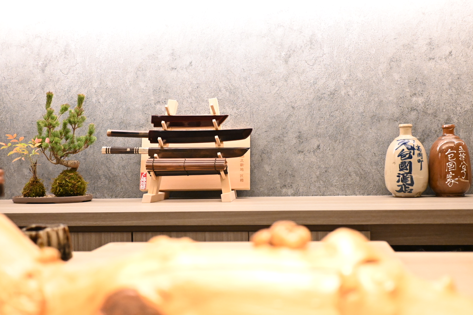 店内の個室には竹刀のモニュメント。剣道七段の【すし たな町】店主は「人のつながりができるのが剣道の一番の魅力」と語ります。メニューはなく、金額の異なる2つのコースから選ぶだけ。あとは全てを店主にお任せあれ。毎日、その日一番新鮮で美味しいネタが提供されます。その日入荷した鮮魚を、自分の目や信頼する魚店の目で厳選し、市場直送で仕入れているので、まさに新鮮そのもの。シャリの米にもこだわり、ネタとのハーモニーも店の人気のひとつとなっています。大切なゲストを招いての至福のひとときには、個室もおすすめ。アクセスも北新地駅から徒歩3分と良く、さまざまなシーンで利用できます。