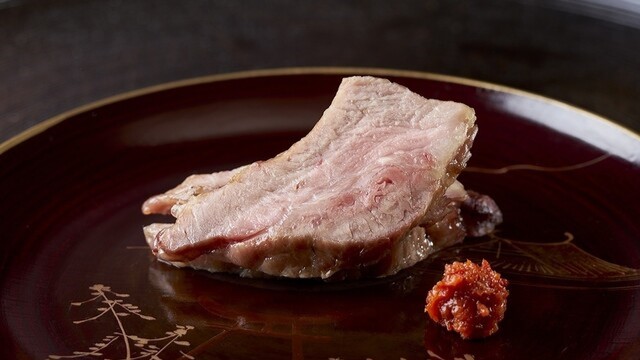 「肉割烹ゆうが」で考える〈銘肉〉とは ブランドに拘らずその時々で最上と思う味わいの 黒毛和牛〈雌牛〉を厳選しました 肉質はキメが細かく良質で霜降りのバランスも良く 濃厚な味わいをご堪能いただけます また四季を二十四節気の暦で考え その時々の旬の食材を〈旬菜〉と表します 刻一刻と変わりゆく移ろいを表現した 御料理の数々で皆さまをお出迎えいたします 店内は臨場感あふれるカウンター席や 伝統工芸の〈組子細工〉をデザインした半個室など 様々な利用シーンで優雅なひと時をお過ごしください