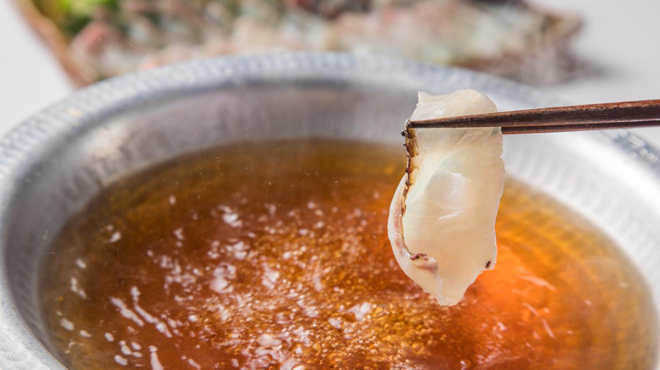 仕入れが命の魚は、信頼のおける漁師さんや漁港の方と毎朝連絡を取り合い、 納得できるものだけを仕入れています。 コースでは自慢の「お造り盛り合わせ」を付き出しで提供するスタイル―。 水と醤油だけで作る煮魚など、 新鮮な魚の旨味を最大限に引き出した料理をどうぞお楽しみください。 お米と水にとことんこだわった土鍋ごはんも名物。 信楽焼の職人さんと試行錯誤を重ねて作ったこだわりの土鍋で炊き上げています。 カウンターメインの落ち着いた空間で、美味なるひとときをお過ごしください。 『大阪コロナ追跡システム導入店』 感染防止策を行っております。ご協力をお願い致します。