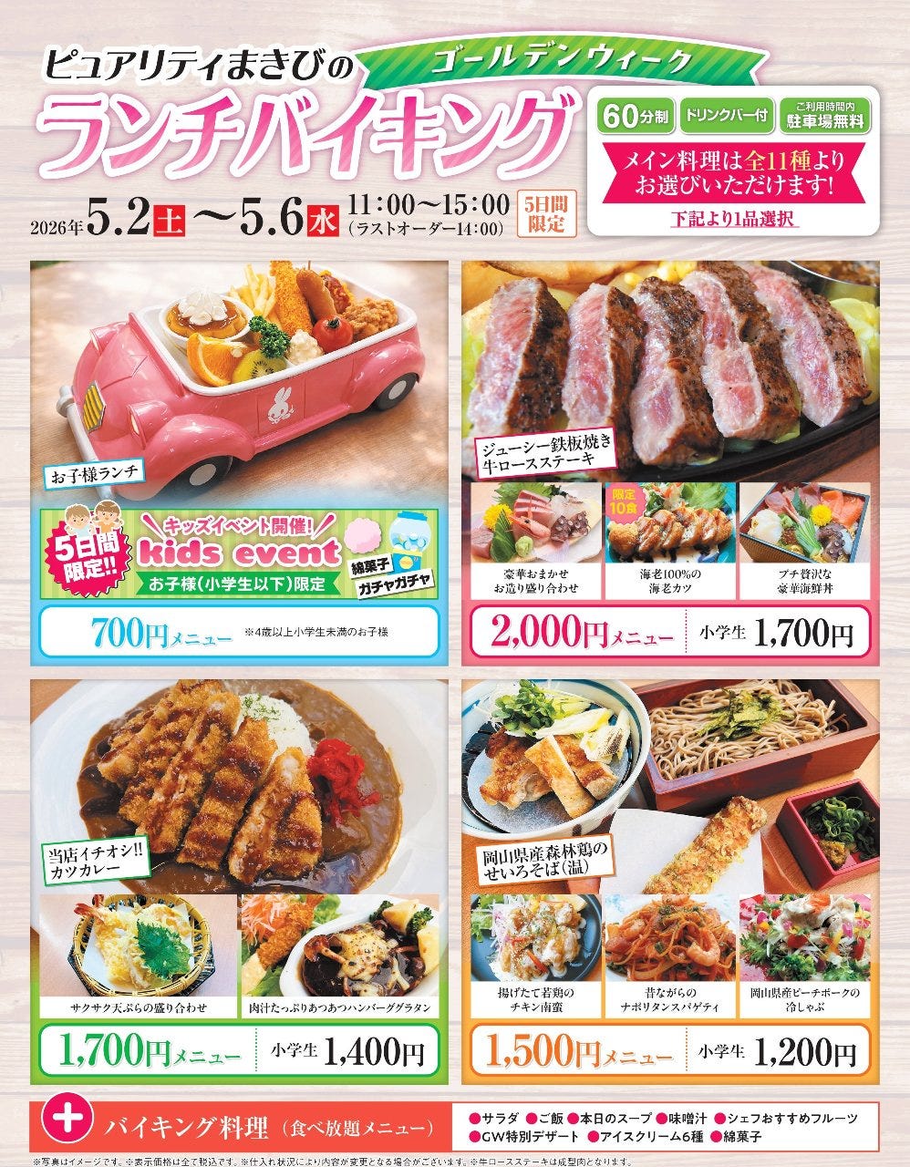 岡山一番街にある王道洋食レストラン♪ 昔ながらのチキンオムライスや肉汁溢れる黒毛和牛100%ハンバーグ、どこか懐かしい味わいのナポリタンなど子供から大人まで楽しめる幅広い洋食メニューが盛りだくさん!ご家族でのお食事にも! (税抜)890円~ メンチカツ、チキンカツ、エビフライなど一つ一つ丁寧に店内で仕込んでいます。 ランチやディナーはもちろんカフェタイムにもおススメのフロートやパフェもご用意してます♪ 学生さん大歓迎!