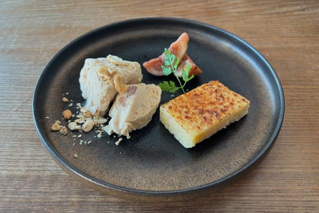 心落ち着く和モダンな空間で、シェフ兼パティシエでもあるオーナーが腕を振るう【金沢町屋はっち】。150年前の姿をそのままに伝えてくれる土間を抜け広がるのは、木の温もりを感じる店内。床には能登ヒバ、テーブルや椅子は小松市の職人が手掛けるなど、一つ一つに高いこだわりが凝縮されています。食材は生産者と直接向き合い、訪れる人々に振る舞いたいと感じた秀逸な地元の素材をオーナーが厳選。とろとろに煮込んだ『能登豚の煮込み』、おつまみに最適な『はっち春雨』など食材の味を生かした看板メニューが充実しています。ドリンクは飲みたいものがあるようにと幅広い品揃え。