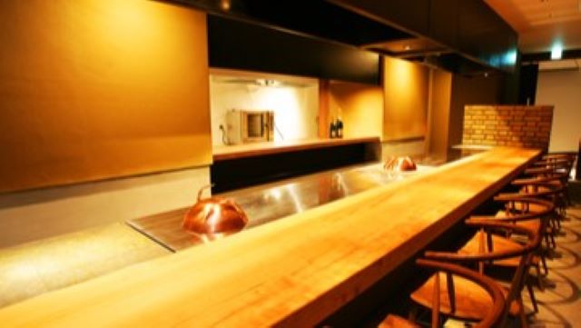 老舗「京都ホテルオークラ」で長年勤め、レストラン料理長をしていた料理人が開いた【プランチャー健】。扉を開けると入口壁一面にワインが並び、インテリアのひとつとなってお出迎え。店内は、テーブル席の赤い椅子がアクセントとなり、すっきりとスタイリッシュな空間です。凛とした空気が流れる中、いただくのは、鉄板焼コース料理。「和牛」のステーキをメインに「オマール海老」や「鮑」など魚介類を味わえるコースも用意されています。豊富な経験と熟練の腕からつくりだされる料理は味、質ともに大満足! 特別な日の主役を喜ばせたい時にも、きっと幸せなひとときが過ごせるお店です。