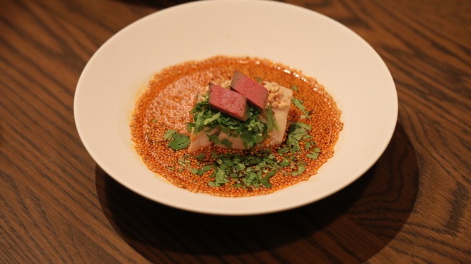 ベースにあるのは沖縄の食文化、琉球料理。そのことを踏まえつつ、【琉球新天地】では異文化との交流によって、独自に進化させ新しく生み出したフュージョン料理が次々とつくられています。使用される食材や調味料は、主に沖縄県産。地元で水揚げされた海産物や石垣牛、石垣産の「ピパーツ(島胡椒)」などが惜しみなく使われています。店内は、天井が高くて開放的。半個室が設けられており、記念日や誕生日の食事会、デート、仕事やプライベートでの会食に最適です。食器や内装にはシノワズリによるデザインが多く取り入れられ、優美でオリエンタルな雰囲気が醸し出されています。コースメニューで、こだわりの逸品を堪能しつくしましょう。