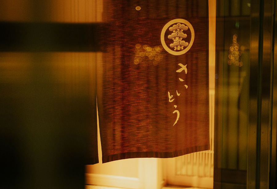 この暖簾の先に、齋藤氏自身が立つつけ場と、中堅若手が立つつけ場の2つの扉がある