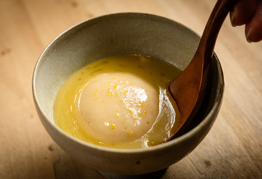 季節の野菜も大切にする食材の一つ。さっぱりとした大根おろしに、伝統的な調味料「煎り酒」を合わせた