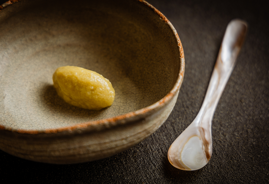 『きぬむすめ』という品種で、甘みが強いのが特徴です。炊き込みでも白米でもおいしく食べられます。コースのなかでは、おじや、煮えばな、炊き込みご飯という3つの表情を持たせて提供しているのも【銀座 有涯】の特徴です。