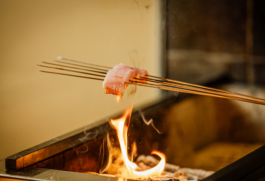 カウンター内の焼き場で鮮やかに魚を焼き上げる